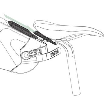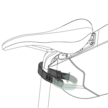 Abbracciare il tubo reggisella con il cinturino. Agganciare il cinturino utilizzando una delle cinque asole a disposizione. Per reggisella