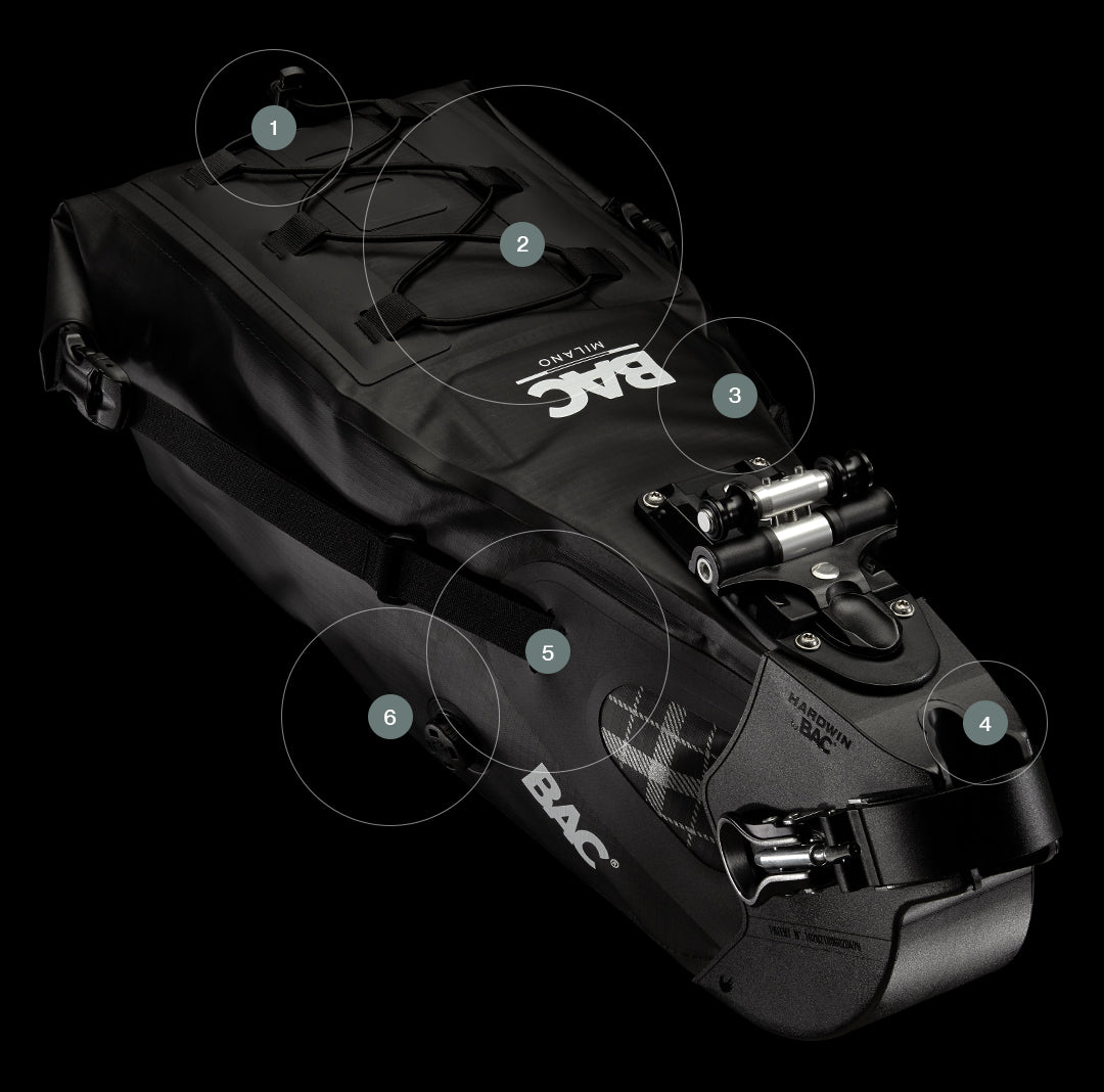 La nuova Seat-Pack di BAC, dotata del rivoluzionario sistema di aggancio Hardwin QFS-01, ridefinisce il concetto di praticità e innovazione nel bikepacking. Il sistema di fissaggio brevettato assicura un montaggio rapido e sicuro, mentre la compatibilità universale con tutti i reggisella rende la Seat-Pack la scelta ideale per ciclisti urbani e avventurieri su due ruote. Eleganza, durabilità e facilità d'uso in un unico prodotto pensato per chi vive la bicicletta come una passione.