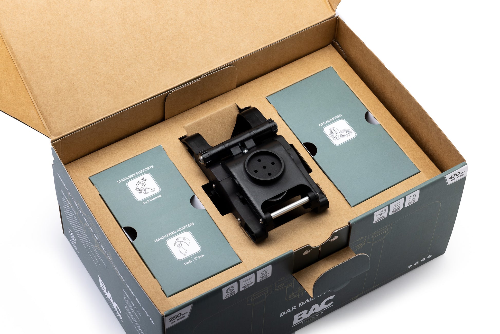 L’Ultimate Bar Bag HUB è molto più di una semplice borsa: è un system bag modulare, progettato per integrare perfettamente accessori essenziali come power bank, attacco faro e supporto GPS (compatibile con Wahoo, Garmin e Bryton). Si avvale di un doppio sistema di fissaggio Hardwin HW2, che garantisce un’installazione rapida, stabile e senza utensili, anche su manubri in carbonio o piatti.